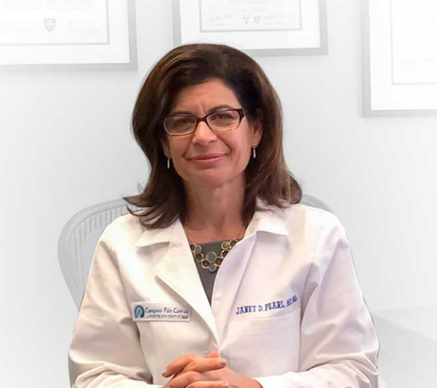 Janet D. Pearl, MD, MSc is the Medical Director of Complete Spine and Pain Care, an interventional and integrated Pain Management program located in Framingham, Massachusetts. Previously, Dr. Pearl was the Co-Director of the Pain Management Center at St. Elizabeth’s Medical Center, where she was also the Director of the Fellowship program.