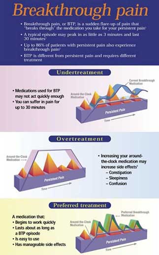 Pain that results from treatments can be categorized into a few types. First, nerve pain is common from chemotherapy, because the medications are very powerful and often toxic to the healthy tissue of the body. Nerve destruction can occur as a result of chemotherapy and once they are damaged, they can cause continual pain. Pain can also result from the destruction of mucus membrane tissues due to chemotherapy or radiationtherapy. This tissue is located in the mouth, nose, and stomach, and all cavities open to the environment. The destruction of this tissue can lead to painful sores and ulcers that don’t heal unless the treatment is discontinued.