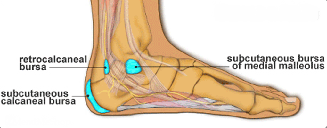 Bursitis is the inflammation of the bursa, a sac filled with lubricating fluid, which decreases rubbing, friction, and irritation, acting as a cushion between bones and other moving body parts such as muscles, tendons, or skin. In the ankle, the retrocalcaneal bursa, located at the junction of the Achilles tendon with the heel bone, is the most common site of bursitis. Inflammation of this bursa can be caused by overuse and is often linked to Achilles tendinitis.