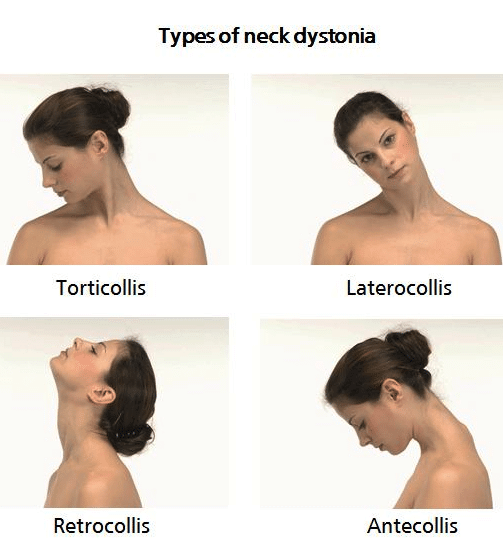 Cervical dystonia is a painful condition of the neck in which the muscles involuntarily contract and cause unwanted movement of the head. It is also known as spasmodic torticollis, and it has no known cause or cure. Several movements are commonly seen with this condition. Tilting the chin to the shoulder is a common one, and slanting the ear toward the shoulder can also occur. In addition, in this condition, the chin can be forced straight upward or straight down, depending on which muscles experience the spasm.