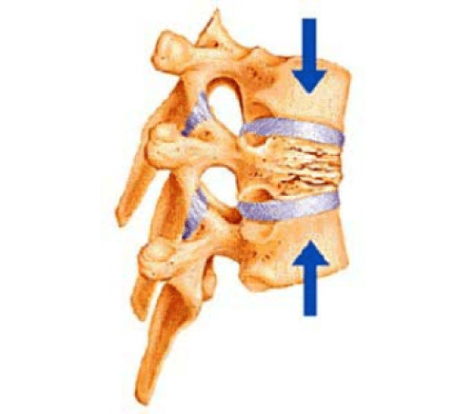 A compression fracture is the collapse of a bone, particularly the vertebrae. Although compression fractures can occur in any bone in the body, they are most troublesome and painful when they occur in the back, often resulting in lower back pain. Compression fractures of the vertebrae are can be caused by trauma, osteoporosis, or cancer.