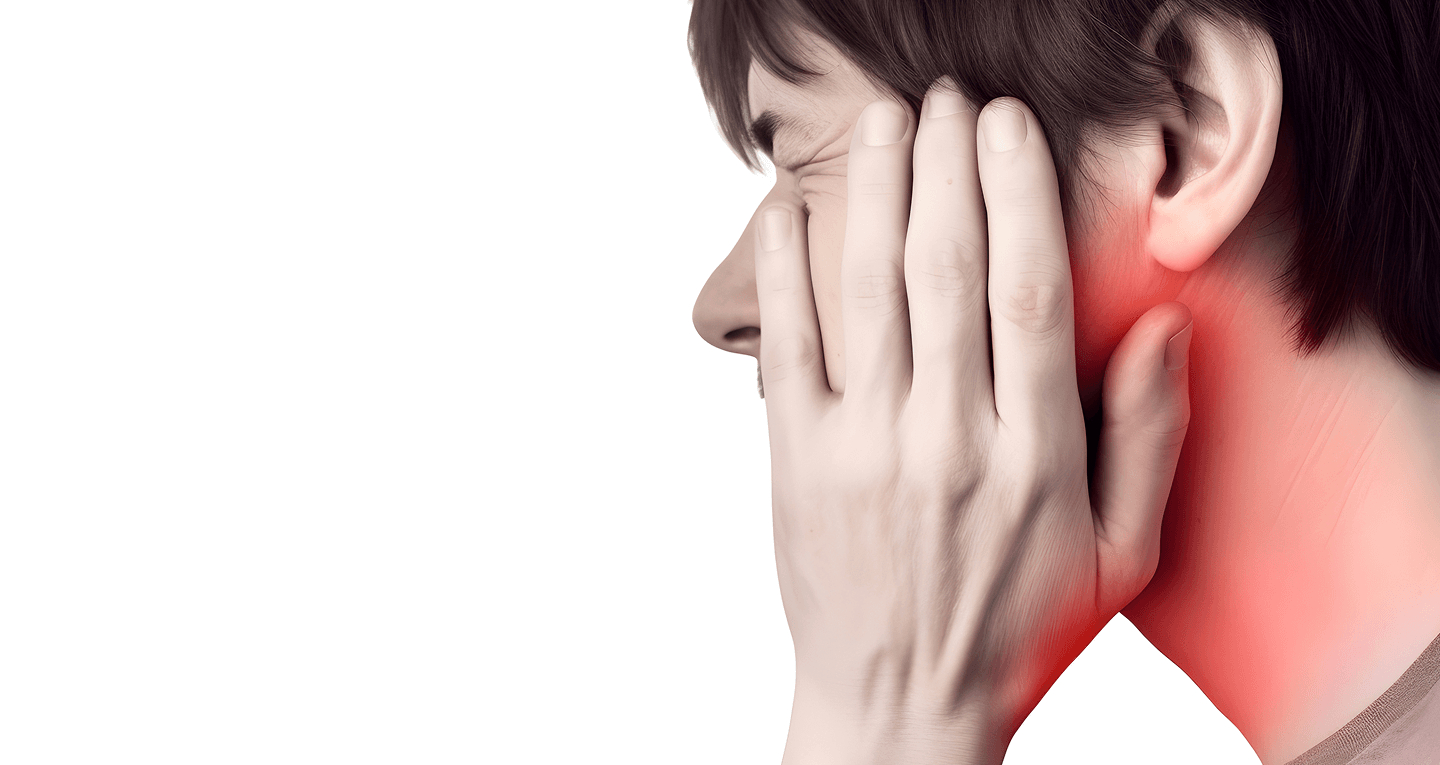 Pain or tenderness is usually felt in the jaw joint area, but it may radiate to other regions, causing toothaches, headaches, or pain in the neck and shoulders; pain can also be felt in or around the ears, especially when chewing or speaking, and different hearing problems may develop, including tinnitus (ringing in the ears).