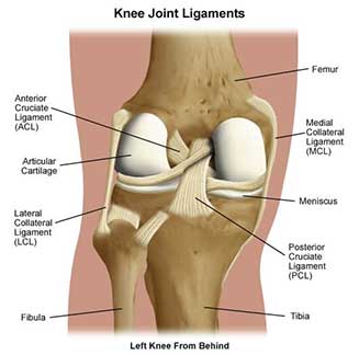 The knee joint is far more complex than this, however. Four separate ligaments connect the bones together to allow for movement. Two run on either side of the joint, called the collateral ligaments. Two other ligaments criss-cross inside the knee joint, the anterior cruciate ligament (ACL) and the posterior cruciate ligament (PCL). If any of these structures, from the ligaments to the joint components, suffer trauma or disease, pain can occur. The pain may be associated with stiffness, locking, and popping of the joint, depending on the injury involved. The patellar tendon is actually a ligament as it connects the patella to the tibia. It can become inflamed and painful in those who do a lot of jumping; in this case, it is called “Jumper’s knee” and is a serious condition.