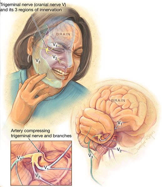 The trigeminal nerve is a nerve that arises from the brain, passing through the skull and ultimately supplying the face. Sometimes, the trigeminal nerve can get affected by some form of inflammation resulting in significant pain along its distribution. This is known as trigeminal neuralgia. Patients experience pain along one aspect of the face which can include the cheek, the jaw and sometimes even the eyes.