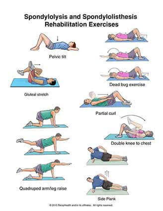 Spondylolisthesis: The word spondylolisthesis comes from the Greek words spondylos, which means “spine” or “vertebra,” and listhesis, which means “to slip or slide.” If the stress fracture weakens the bone so much that it is unable to maintain its proper position, the vertebra can start to shift out of place. This condition is called spondylolisthesis (spon-dee-low-lis-thee-sis). If too much slippage occurs, the bones may begin to press on nerves and surgery may be necessary to correct the condition.